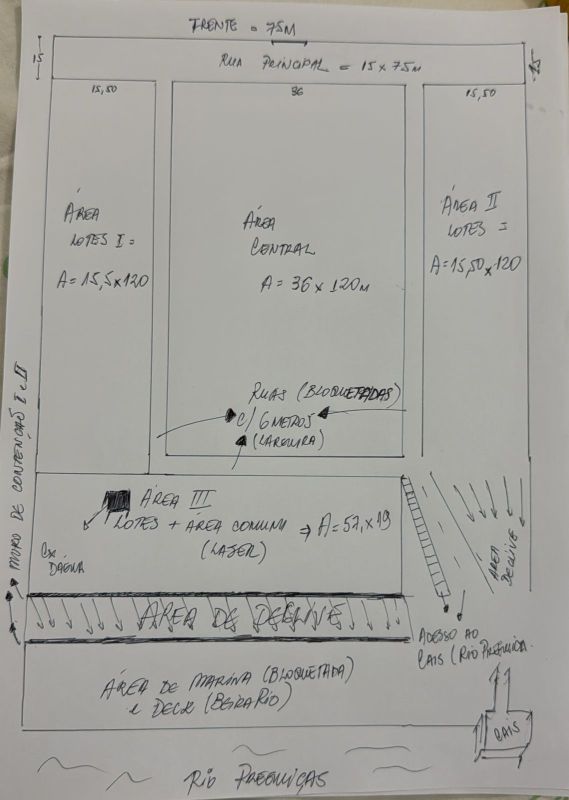 Terreno 75 x 200, Beira de Rio, todo murado, com ruas feitas com bloquetes, excelente para Condomínio de Apartamentos, Casas e Studios.